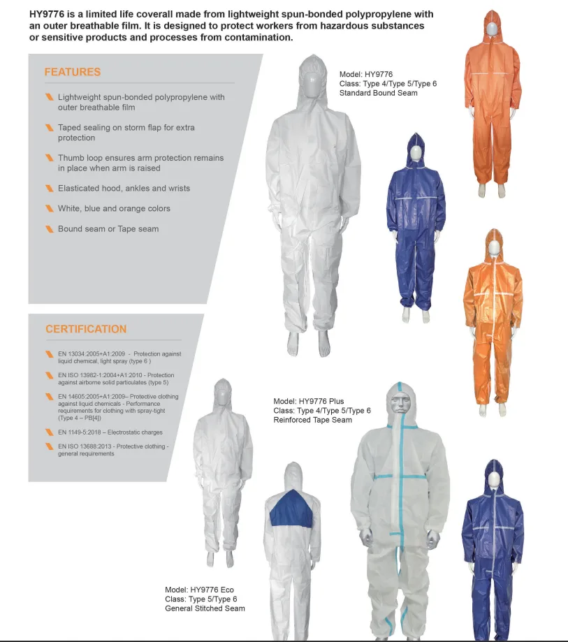 Aceppe C9766 Type 5/6 Limited Life Coverall Protective Clothing