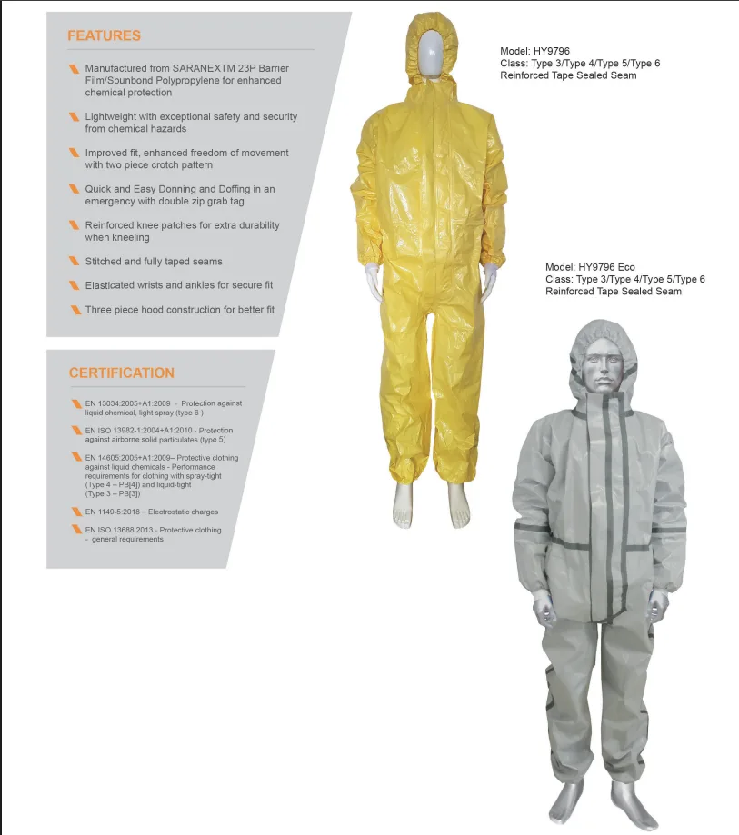 Aceppe C9796A Type 3/4/5/6 Limited Life Chemical Coverall Protective Clothing